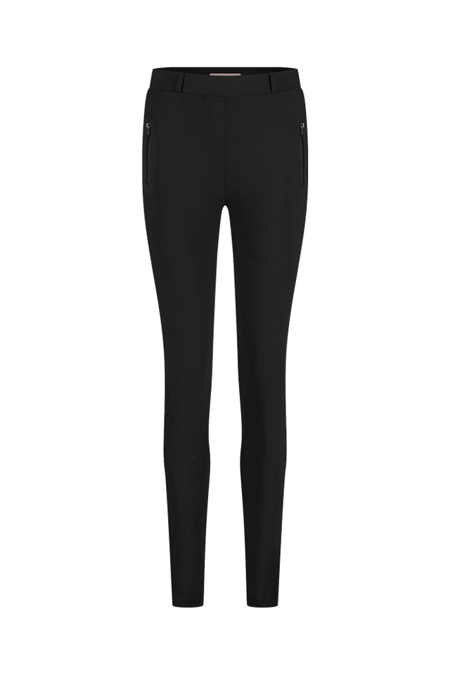 Slim fit broek van Studio Anneloes in een travel kwaliteit met twee opgestikte zakken aan de achterzijde, ritsen aan de pijpen en een elastische tailleband.