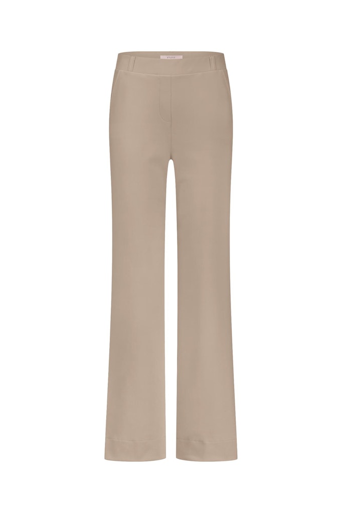 Broek van Studio Anneloes in travel kwaliteit met wijde pijpen, twee steekzakken, twee paspelzakken aan de achterzijde en een elastische tailleband.