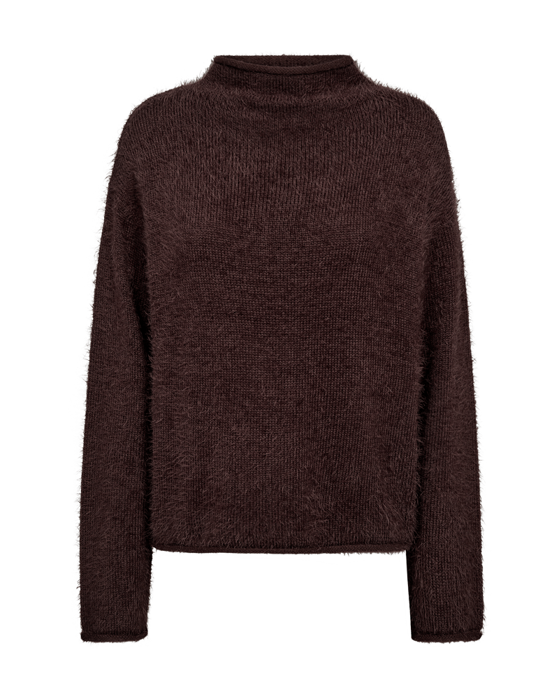 Harige trui van Freequent met lange mouwen, verlaagde schoudernaden en opstaande kraag. Materiaal: Polyamide 60%| acryl 40%