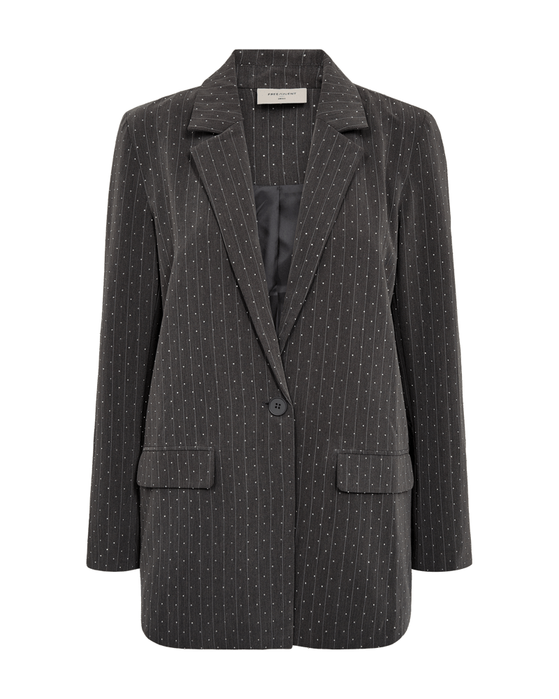 Krijtstreep blazer van Freequent met kleine steentjes, lange mouwen, knoopsluiting, reverskraag en klepzakken.