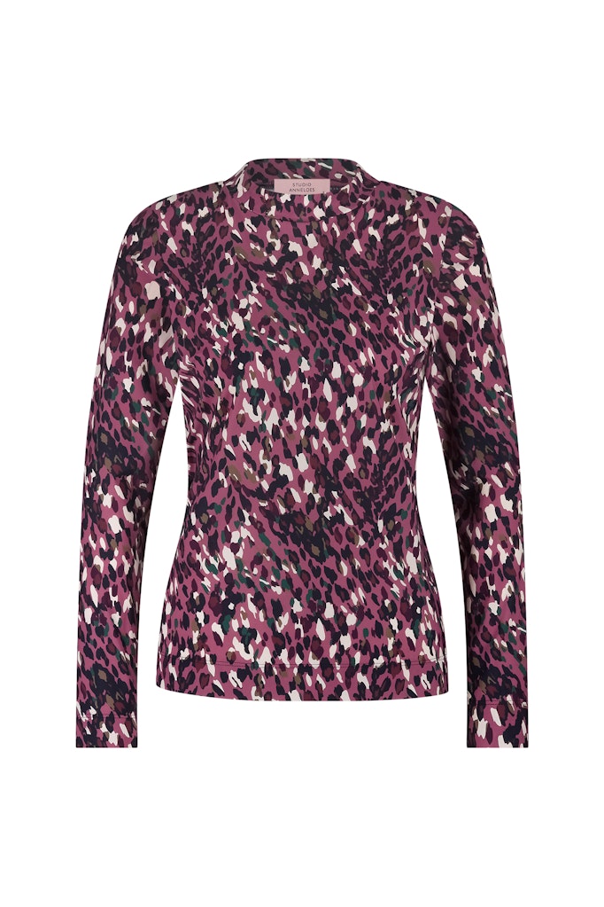 Top van Studio Anneloes in een all-over luipaard dessin met lange mouwen en opstaande kraag.