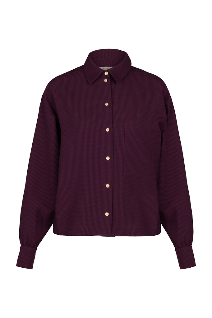 Blouse van Studio Anneloes in een wafel structuur met lange mouwen, kraag, knoopsluiting, rugplooi en een opgestikte borstzak.