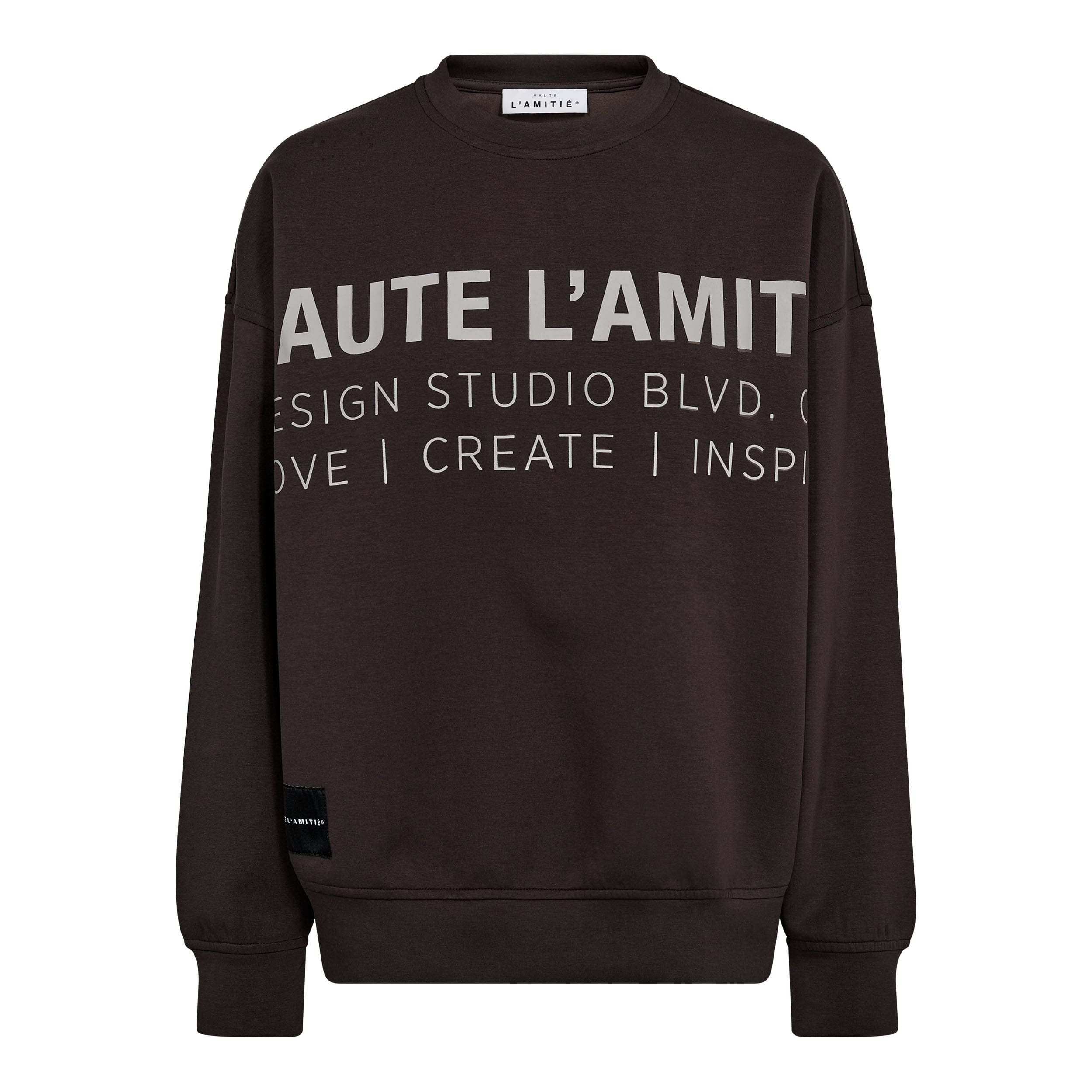 Sweater van Haut l'amitié met lange mouwen, ronde hals, logoprint op de borst en ribgebreide boorden.