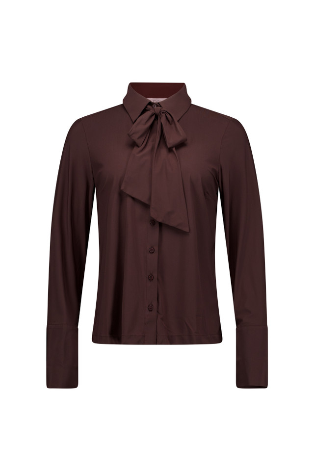 Blouse van Studio Anneloes in travel kwaliteit met lange mouwen voorzien van brede manchetten, kraag, strikdetail en een knoopsluiting.