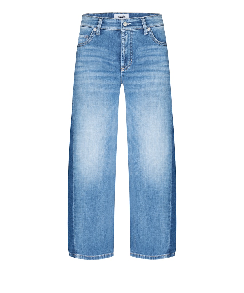 Enkellange 5-pocket O shape jeans van Cambio met wijde pijpen en knoop- en ritssluiting. Materiaal: Katoen 92%| elastomultiester 6%| elastan 2%