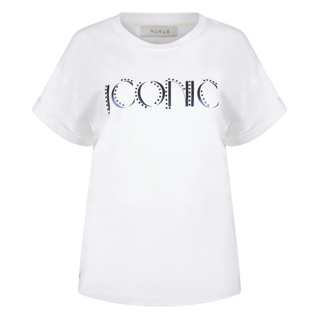 T-shirt van Nukus met korte mouwen voorzien van omslag, ronde hals en ICONIC print op de voorzijde.