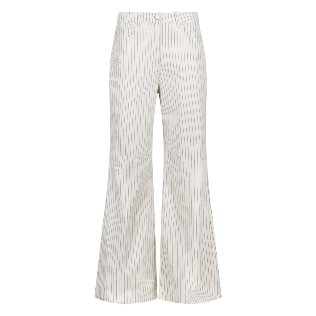 Gestreepte 5-pocket broek van Nukus met wijde pijpen en een knoop- en ritssluiting. Materiaal: Katoen 97%| elastan 3%