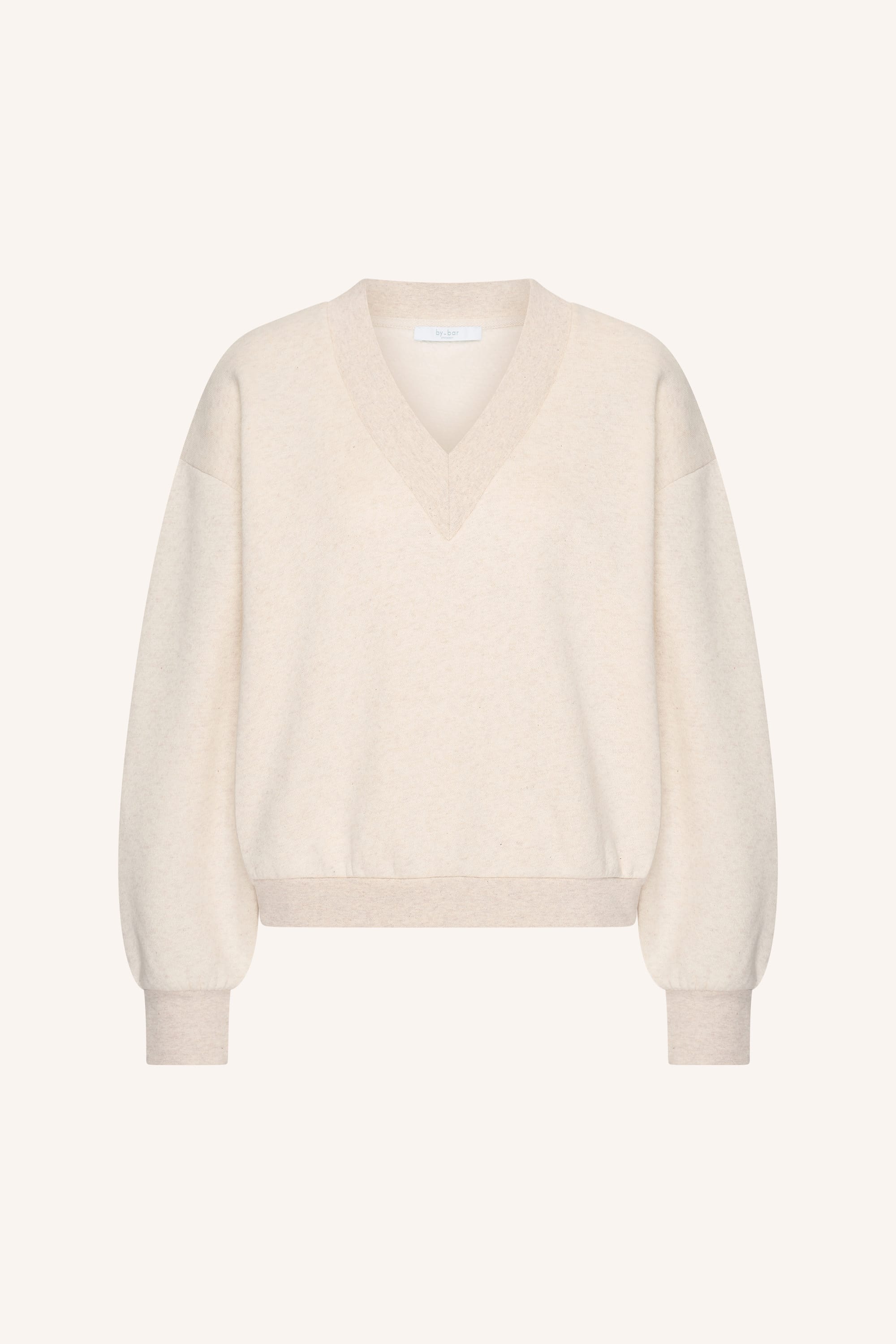 Sweater van By-bar met lange mouwen, verlaagde schoudernaden, V-hals en subtiel borduurwerk. Materiaal: Katoen 80%| polyester 20%