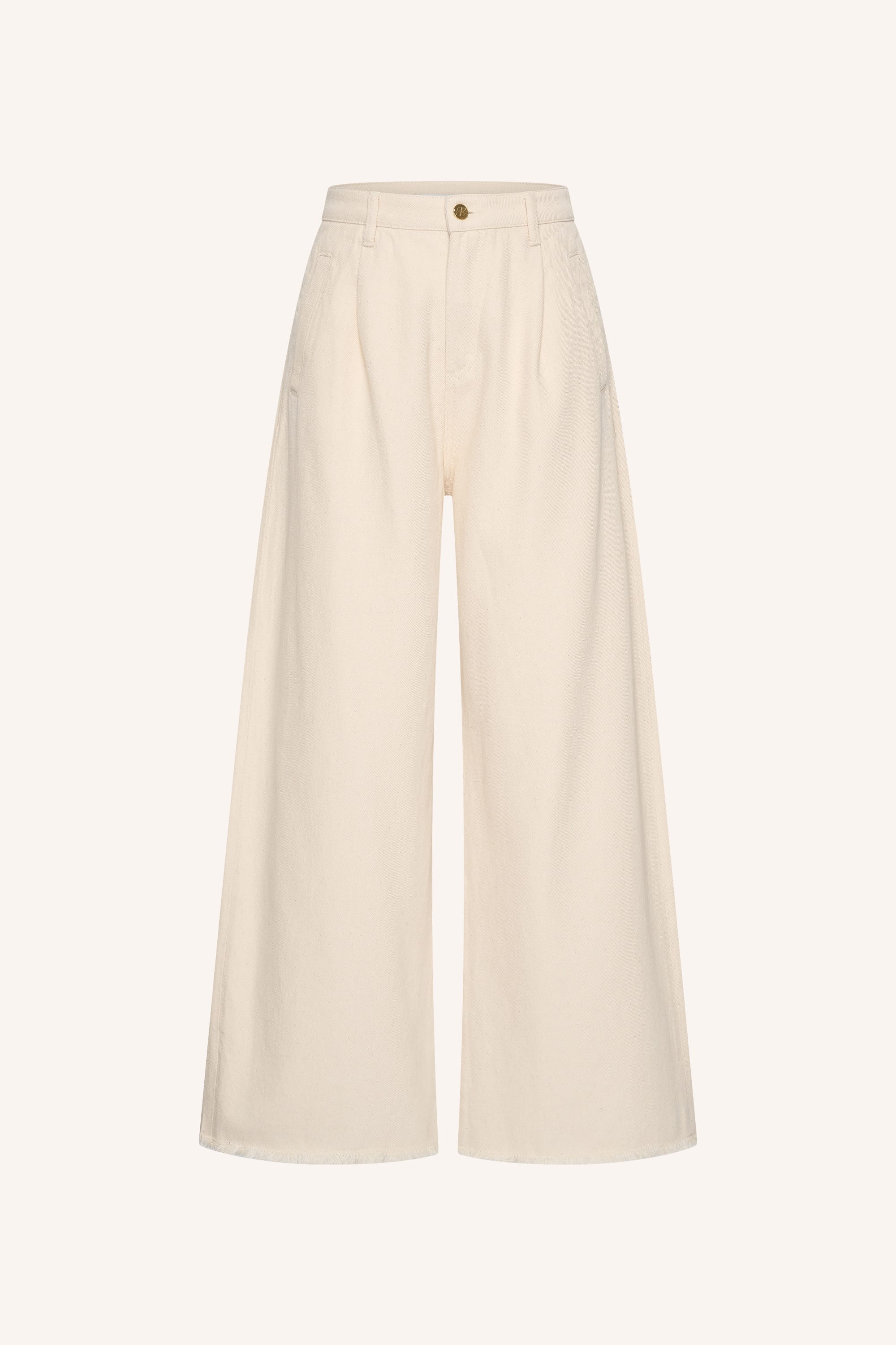 Jeans van By-bar met wijde pijpen, knoop- en ritssluiting, normale taillehoogte, steekzakken en opgestikte achterzakken. Materiaal: Organic katoen 100%