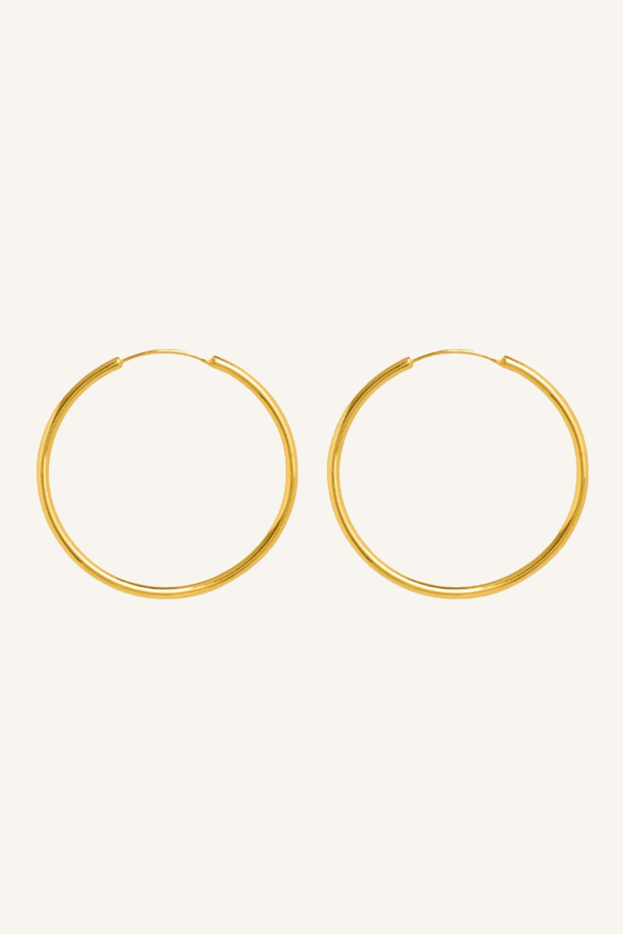 Goudkleurige oorbellen van By-bar gemaakt van nikkelvrij koper met een laagje 22K verguld goud. Diameter 5,2 cm.