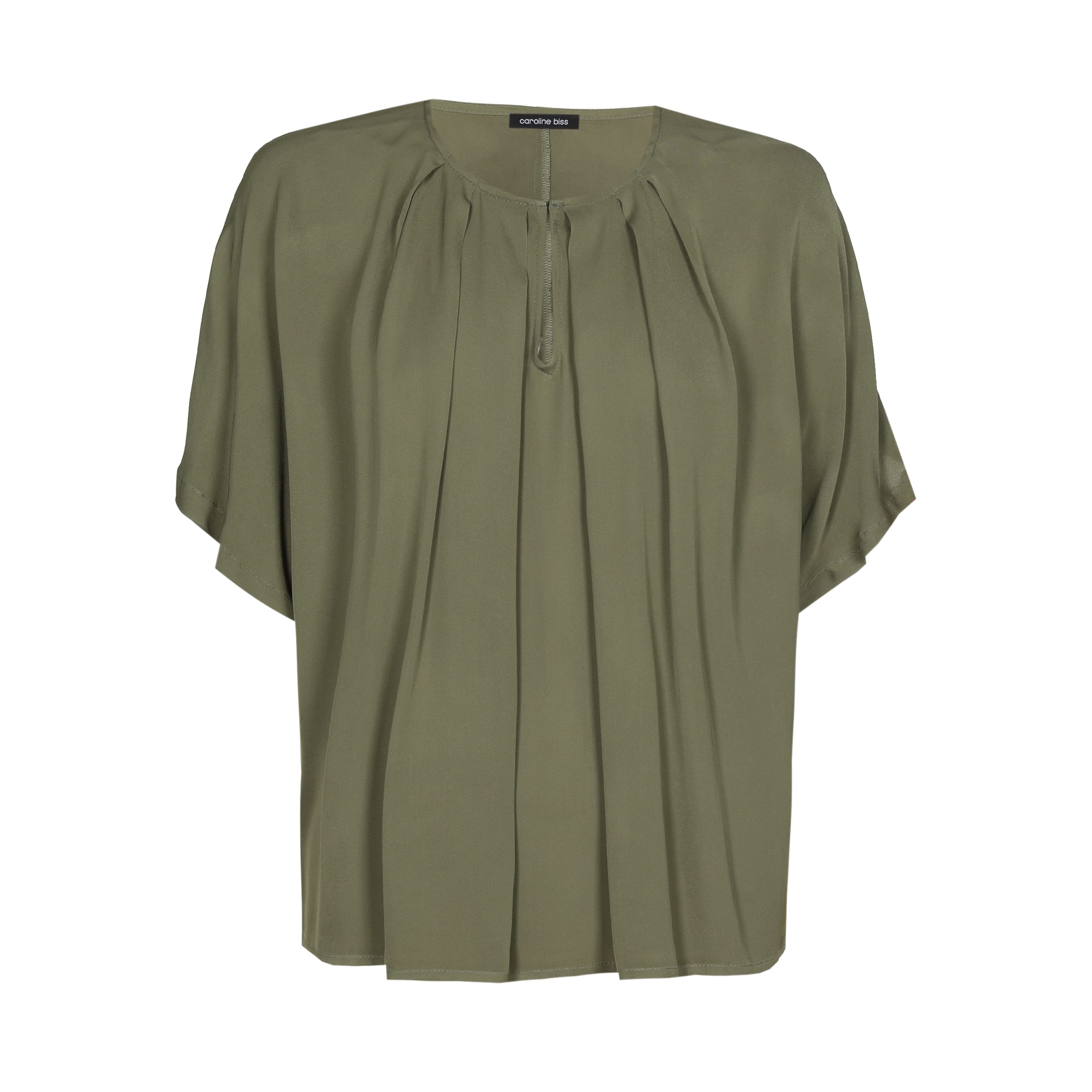 Blouse van Caroline Biss met korte mouwen, plooien en een ronde hals voorzien van uitsnede met haaksluiting. Materiaal: Viscose 100%