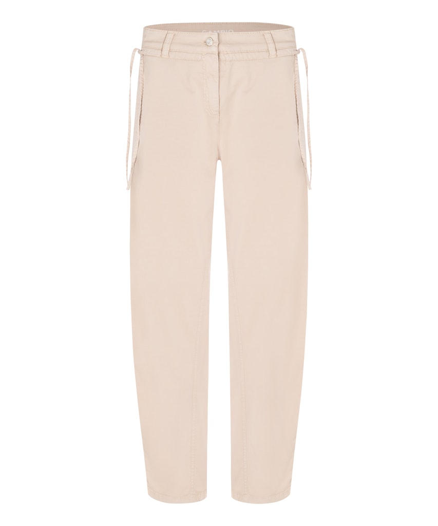 Barrel broek van Cambio met een knoop- en ritssluiting, steekzakken, twee paspelzakken aan de achterzijde en strikkoordjes in de taille.