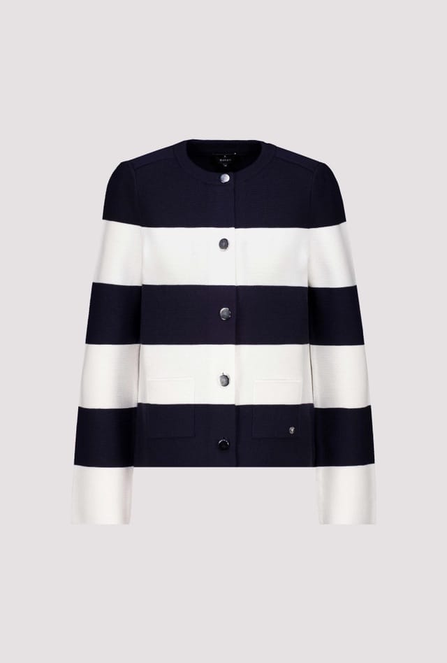 Gebreid vest van Monari met strepen, lange mouwen, knoopsluiting, ronde hals en opgestikte zakken. Materiaal: Katoen 50%| acryl 50%