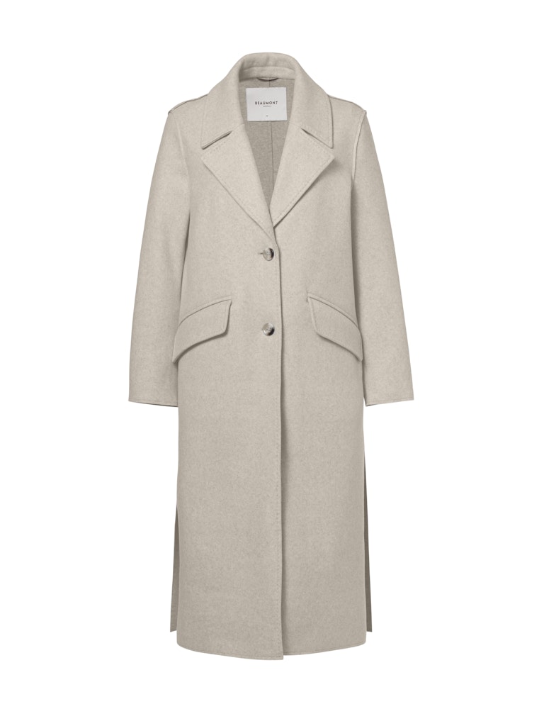 Lange jas van Beaumont met een knoopsluiting, reverskraag, klepzakken en zijsplitten. Materiaal: Polyester 80%| wol 20%