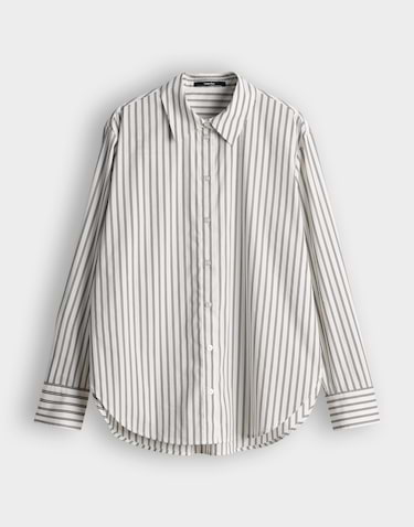 Gestreepte blouse van Someday met lange mouwen, kraag, knoopsluiting, rugplooi en een afgeronde onderzijde. Materiaal: Katoen 70%| polyamide 27%| elastan 3%