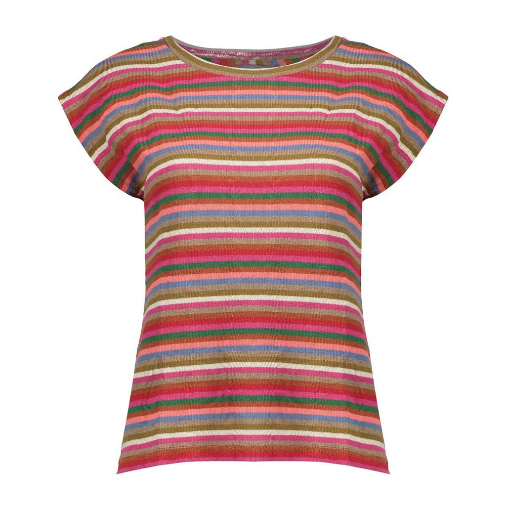 Gestreepte top van Geisha met korte aangeknipte mouwen en een ronde hals. Materiaal: Katoen 78%| polyester 18%| elastan 9%