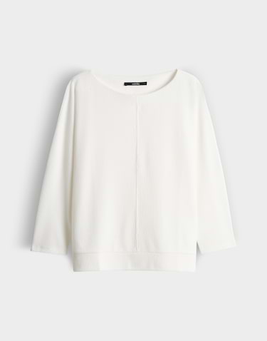 Jersey shirt van Someday in een fijne ribstructuur met driekwart vleermuismouwen, ronde hals en een elastische boord aan de onderzijde.