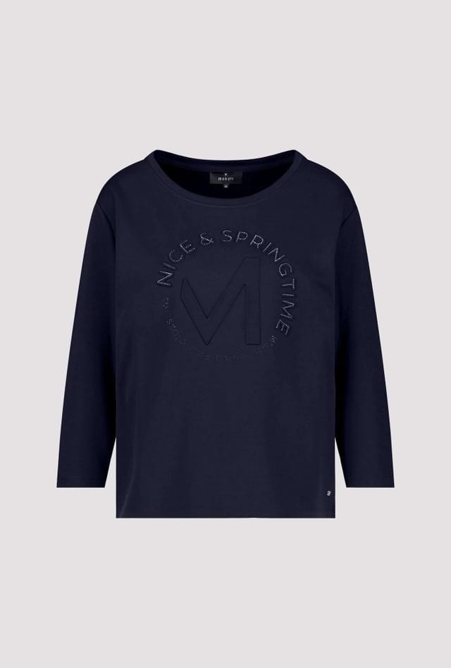 Sweatshirt van Monari met driekwart mouwen, ronde hals en een reliëf-print voorzien van strass-steentjes aan de voorzijde.
