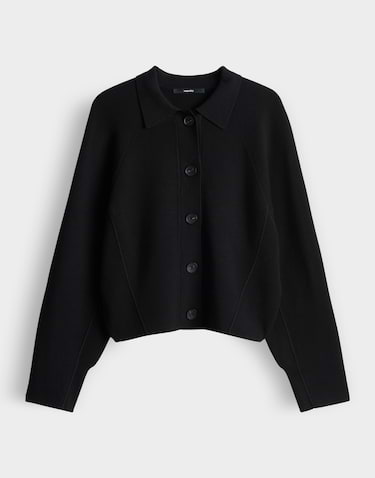 Vest van Someday in een dubbelgebreide stof met lange mouwen, kraag, knoopsluiting en een gerimpelde ballonzoom aan de achterzijde.