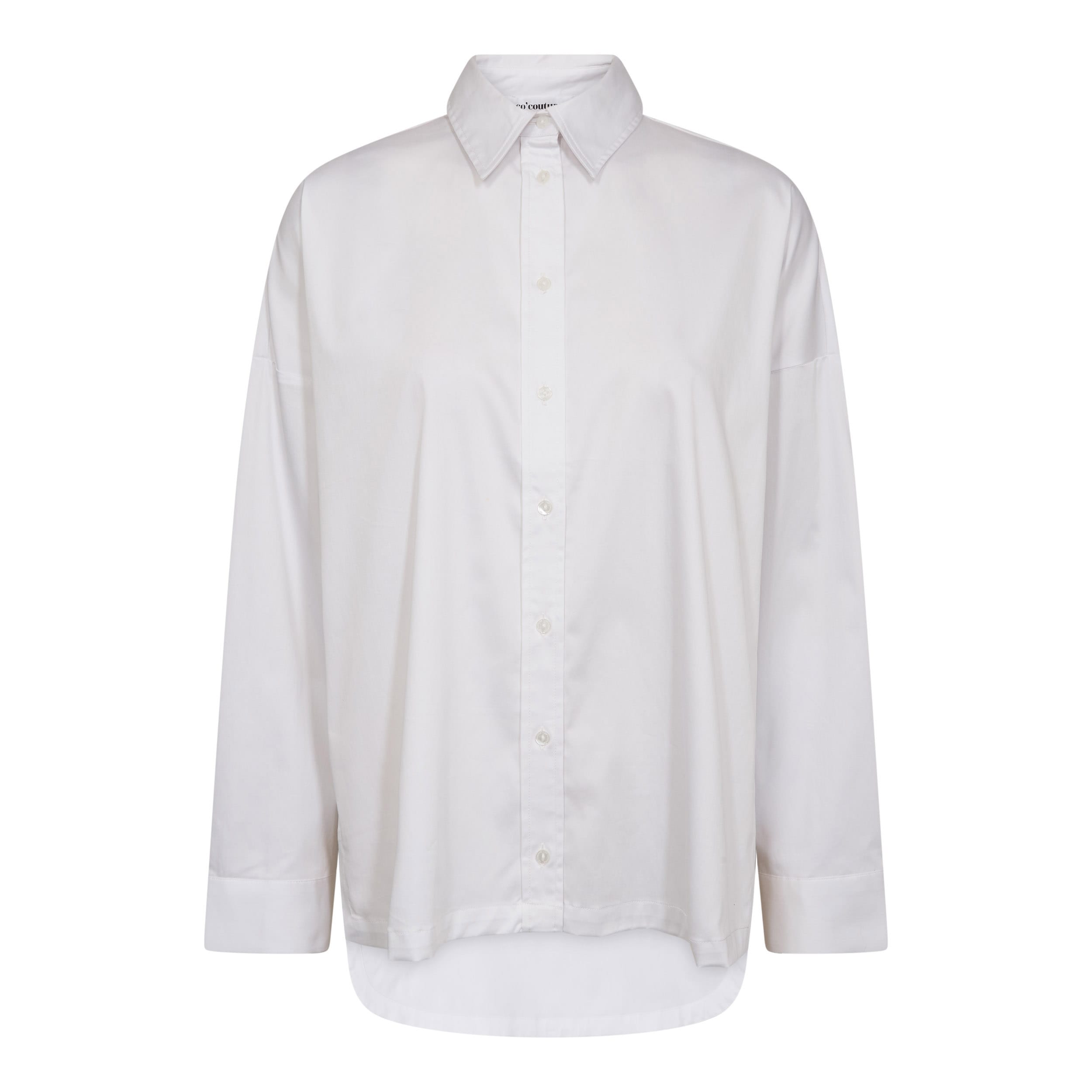 Oversized blouse van Co'Couture met lange mouwen, verlaagde schoudernaden, klassieke kraag, knoopsluiting en een langere achterzijde. Materiaal: Katoen 68%| polyamide 30%| elastan 2%