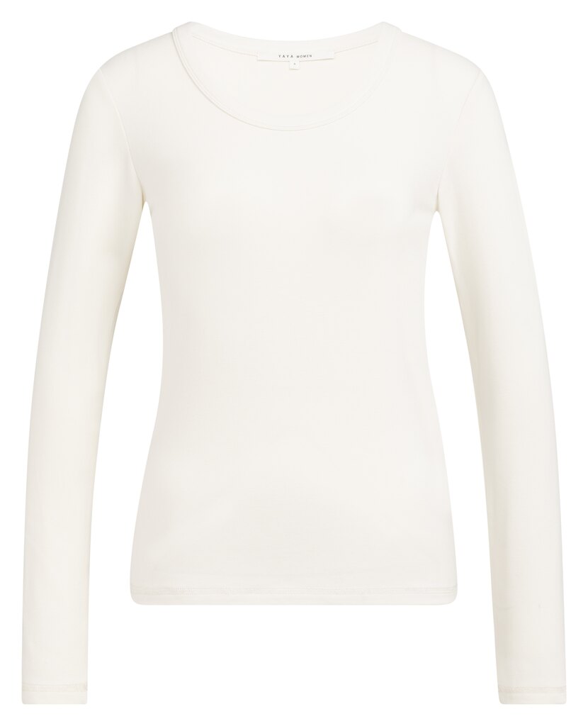 T-shirt van Yaya met lange mouwen en ronde hals. Materiaal: Viscose 37%| acryl 29%| katoen 29%| elastan 5%