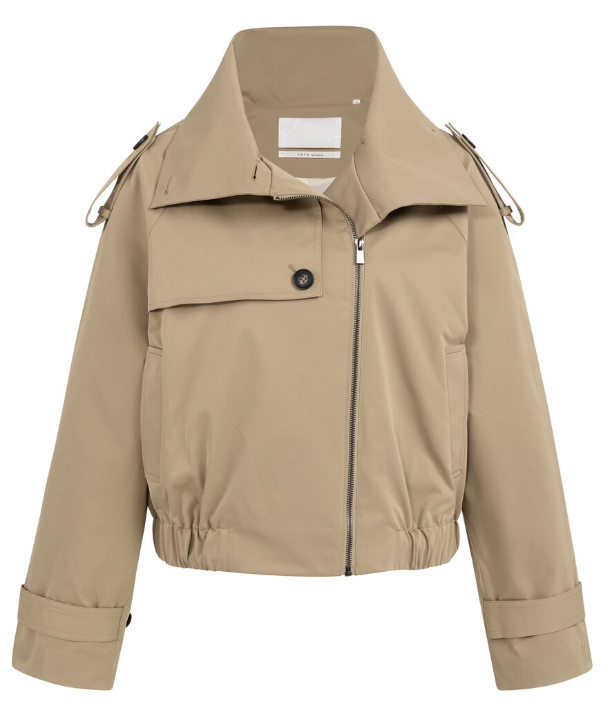 Trenchcoat bomberjack van Yaya met een asymmetriche ritssluiting, grote kraag, epauletten op de schouders, steekzakken, elastische zoom en verstelbare manchetten.