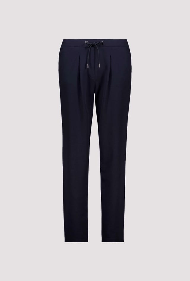 Sweatbroek van Monari met een elastische tailleband voorzien van trekkoord, bandplooien, steekzakken en paspelzakken aan de achterzijde. Materiaal: Polyester 55%| viscose 38%| elastan 7%