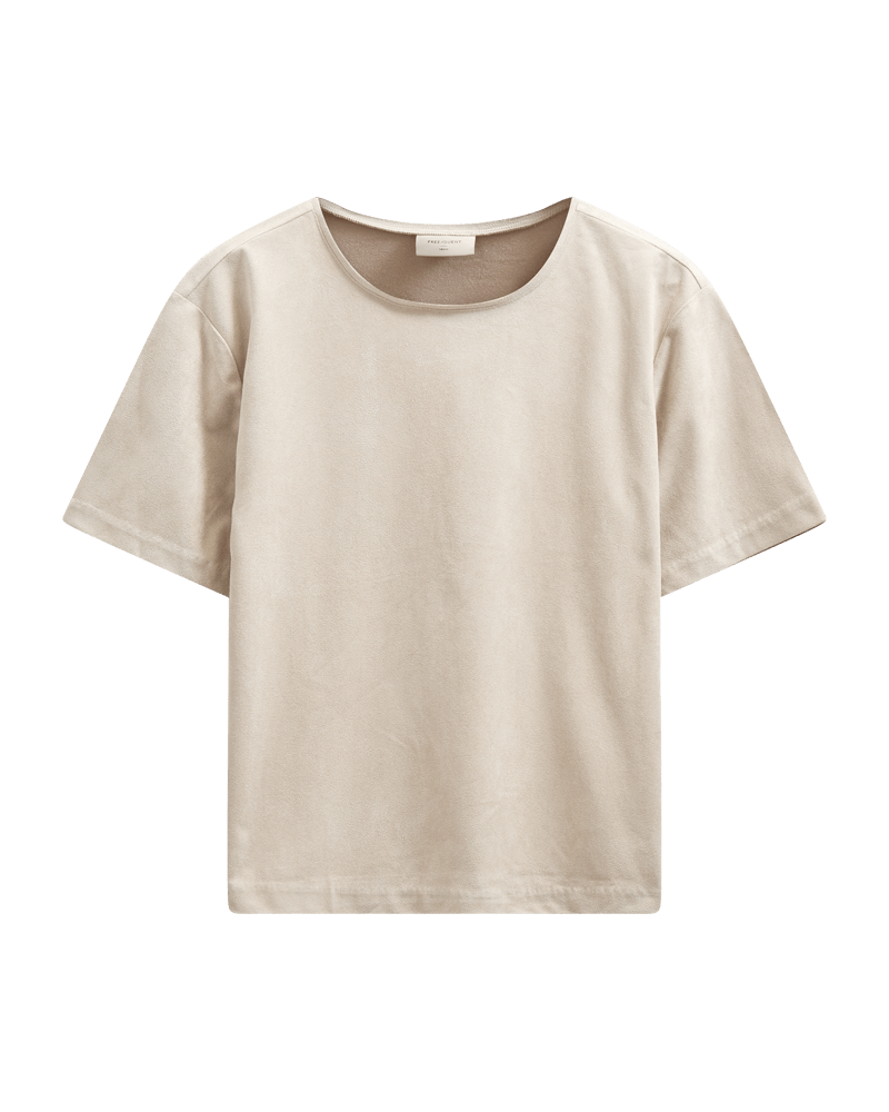 Suedine shirt van Freequent met korte mouwen en ronde hals. Materiaal: Polyester 100%