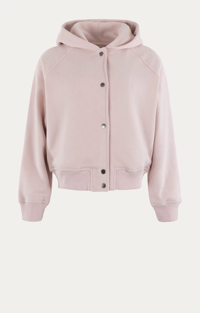 Vest van Moscow met lange raglanmouwen, capuchon, drukknoopsluiting en ribgebreide boorden. Materiaal: Katoen 70%| polyester 30%