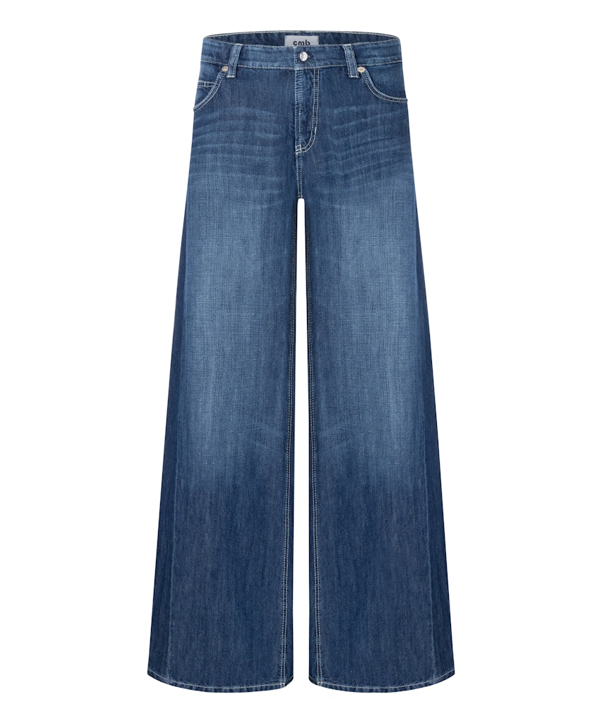 5-pocket palazzo jeans van Cambio met wijde pijpen en een knoop- en ritssluiting. Materiaal: Katoen 60%| linnen 40%