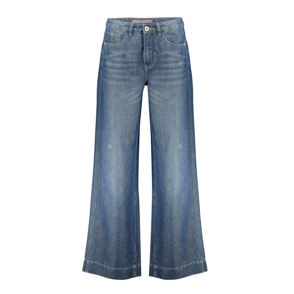 5-pocket jeans van Geisha met wijde pijpen, versleten details en een knoop- en ritssuiting. Materiaal: Katoen 83%| polyester 17%