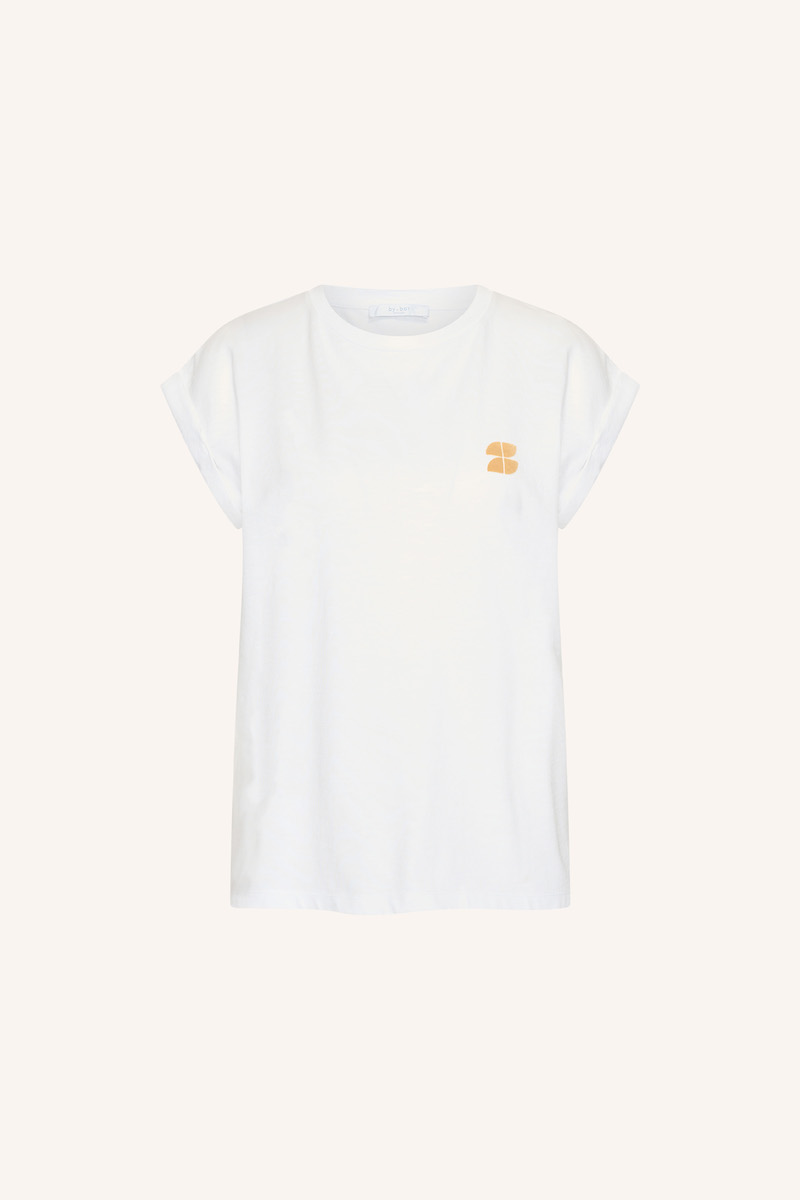 T-shirt van By-Bar met korte mouwen voorzien van omslag, ronde hals en logo op de linkerborst. Materiaal: Organic katoen 100%