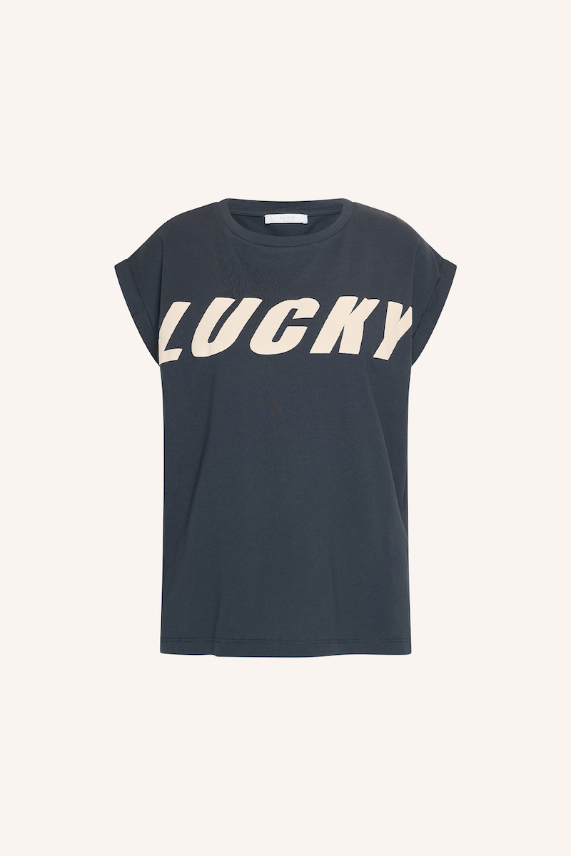 T-shirt van By-Bar met korte mouwen voorzien van omslag, ronde hals en LUCKY opdruk aan de voorzijde. Materiaal: Organic katoen 100%
