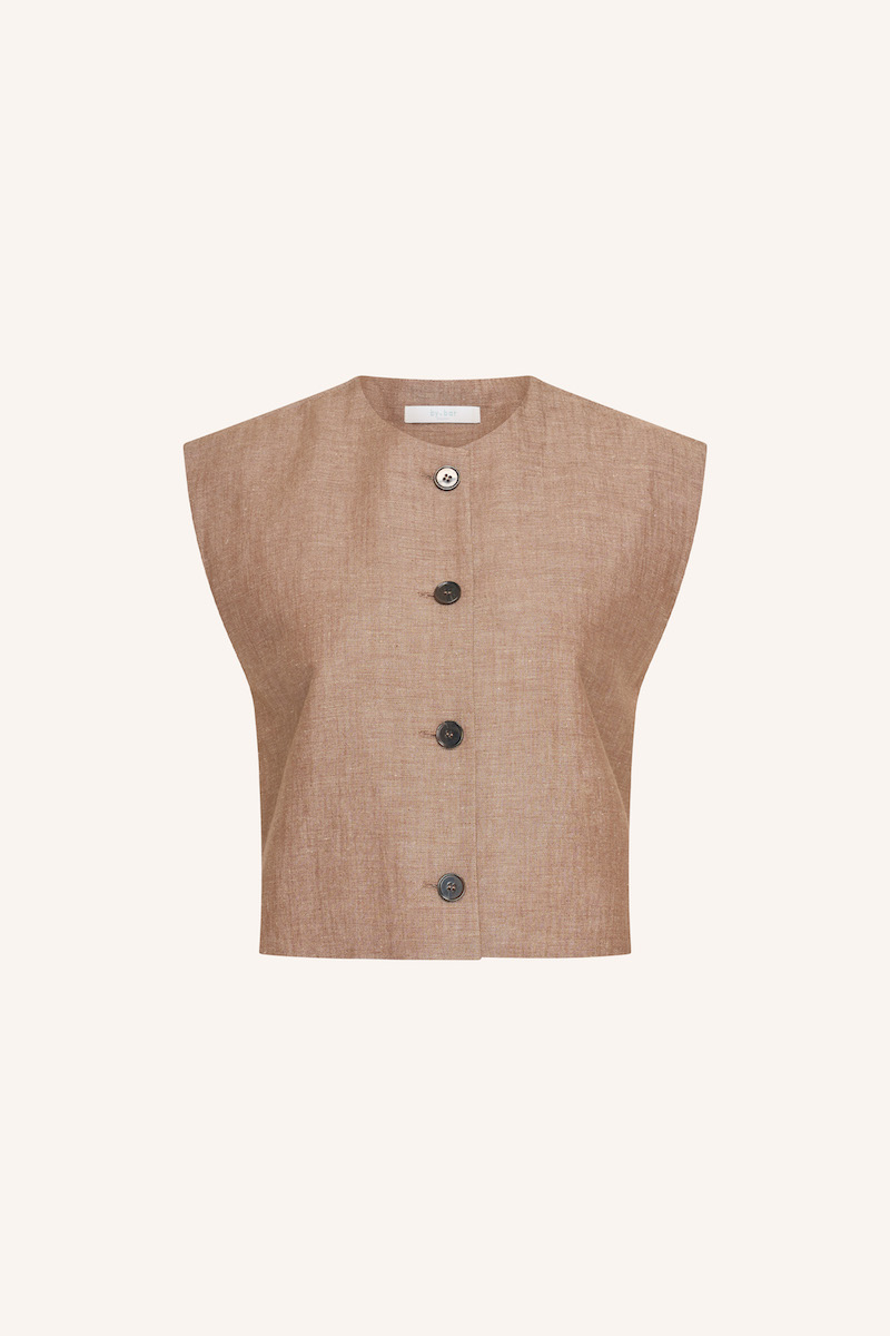 Gilet van By-Bar met een ronde hals en knoopsluiting. Materiaal: Katoen 55%| linnen 45%