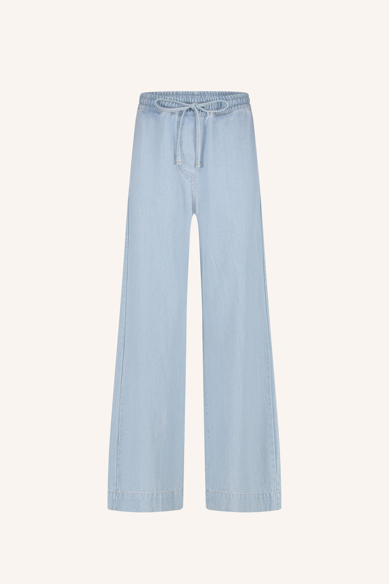 Denim broek van By-Bar met wijde pijpen, steekzakken, een opgestikte achterzak en een elastische tailleband voorzien van trekkoord. Materiaal: Katoen 100%