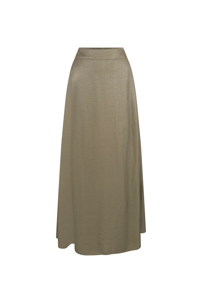 Glanzende rok van Jansen Amsterdam met een platte tailleband aan de voorkant, elastiek aan de achterkant en insteekzakken.