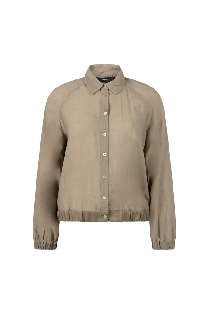 Blouse van Jansen Amsterdam in een bombermodel met lange mouwen, elastische boorden, kraag en knoopsluiting. Materiaal: Viscose 81%| nylon 19%