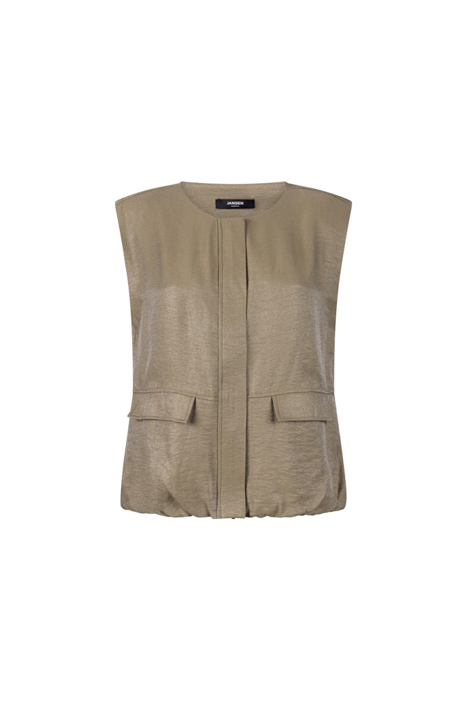 Glanzende, mouwloos bomberjasje van Jansen Amsterdam met een verborgen ritssluiting en ronde hals. Materiaal: Viscose 89%| nylon 11%