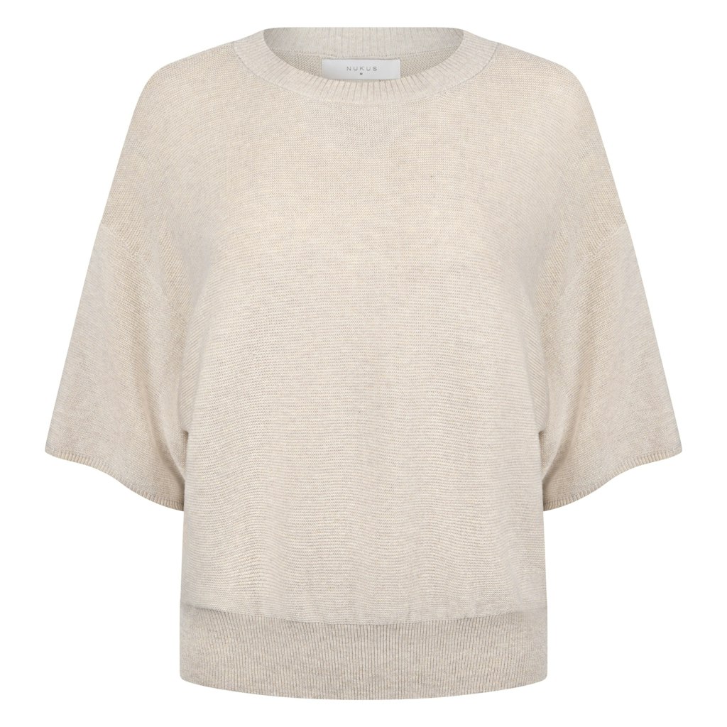 Lurex pullover van Nukus met driekwart mouwen, verlaagde schoudernaden, ronde hals en knoopjesdetail op de rug. Materiaal: Katoen 86%| lurex 12%| nylon 2%