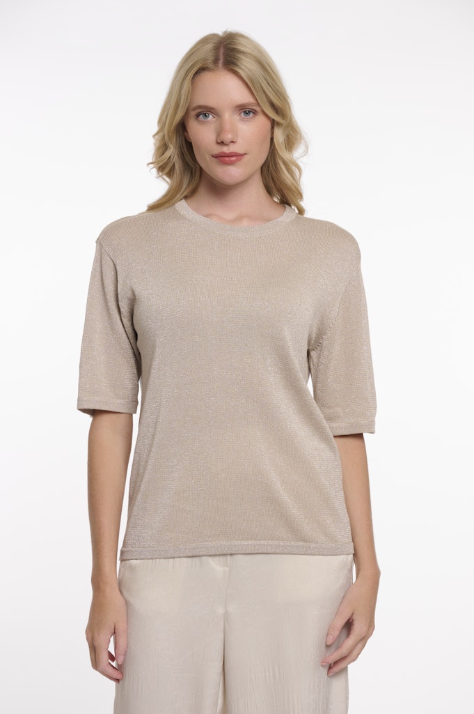 Lurex trui van Rino & Pelle met halflange mouwen, ronde hals en smalle ribgebreide boorden.