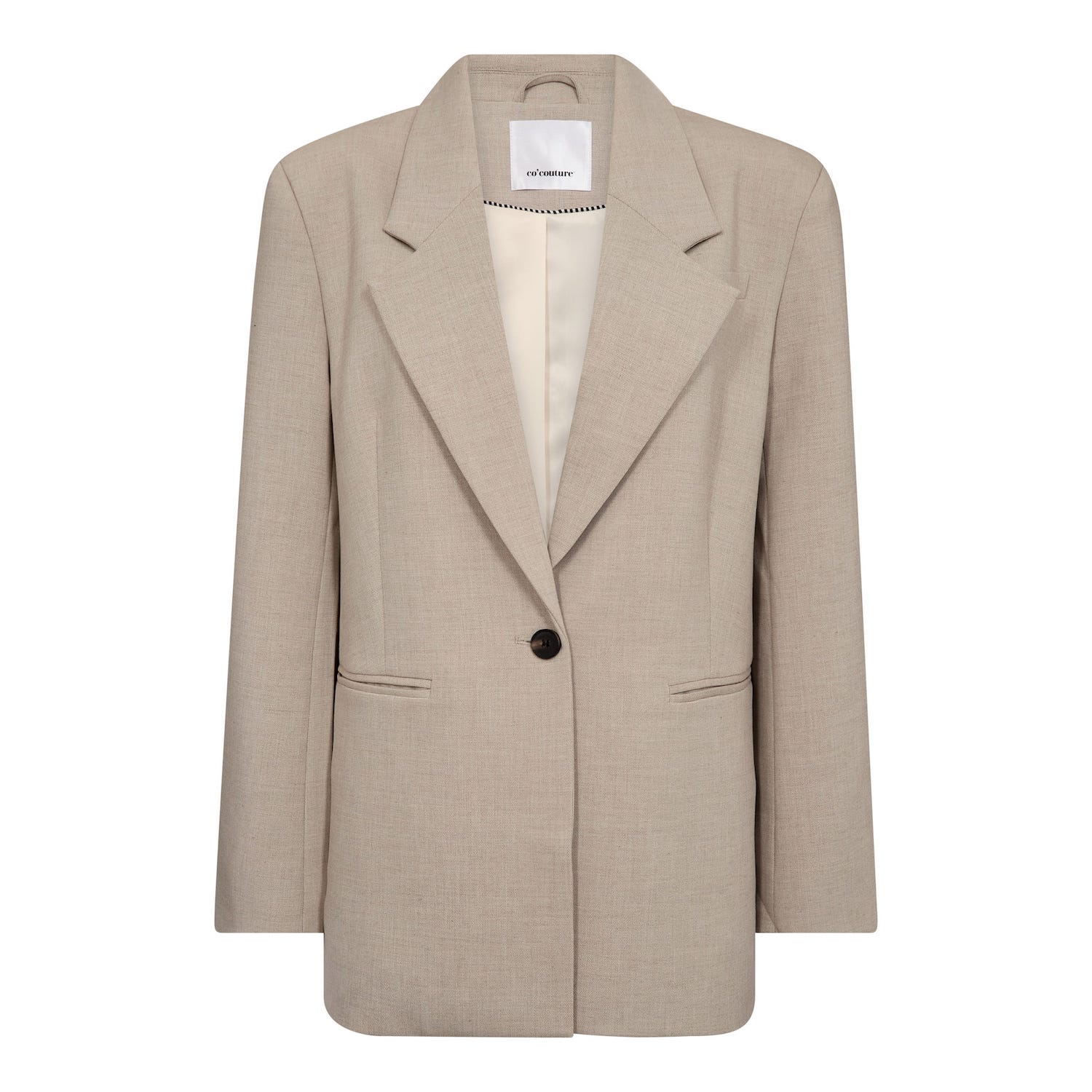 Oversized blazer van Co'Couture met lange mouwen, reverskraag, knoopsluiting, paspelzakken en knoopdetail aan de achterzijde. Materiaal: Polyester 68%| viscose 27%| elastan 5%