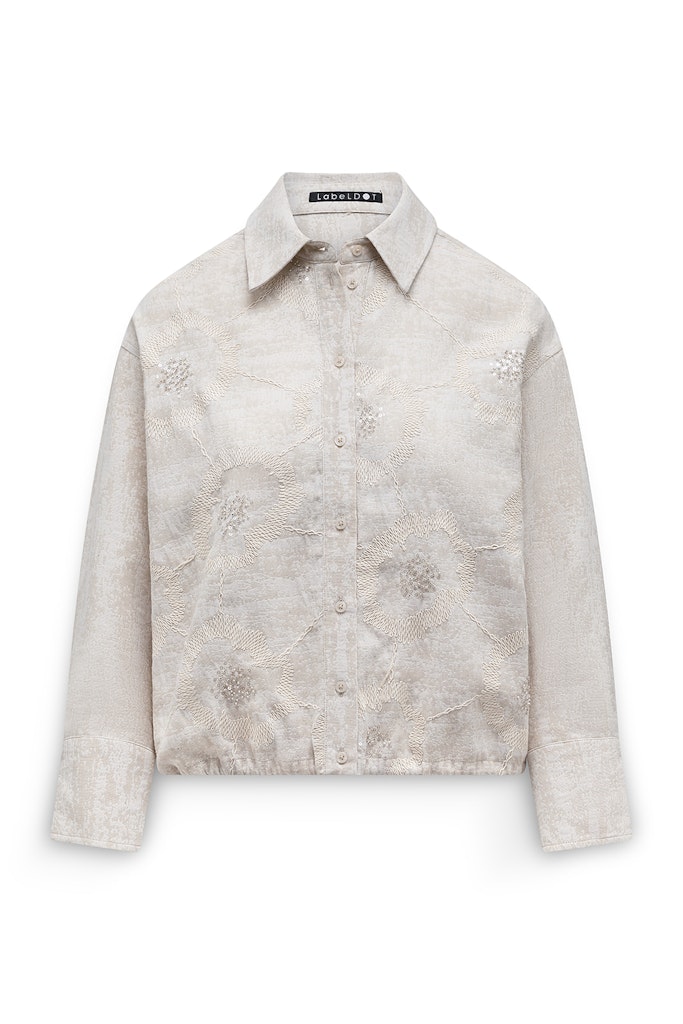 Jacquard blouse van Label Dot voorzien van borduusels met lange mouwen, kraag, knoopsluiting en een elastische zoom. Materiaal: Katoen 100%