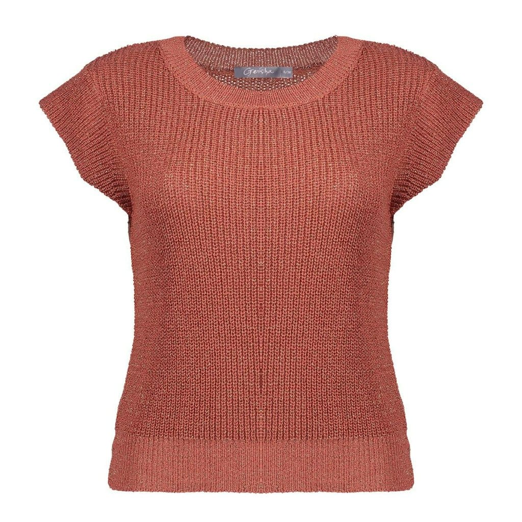 Lurex trui van Geisha met korte kapmouwen, ronde hals en ribgebreide boorden. Materiaal: Katoen 86%| polyamide 10%| metaal 4%
