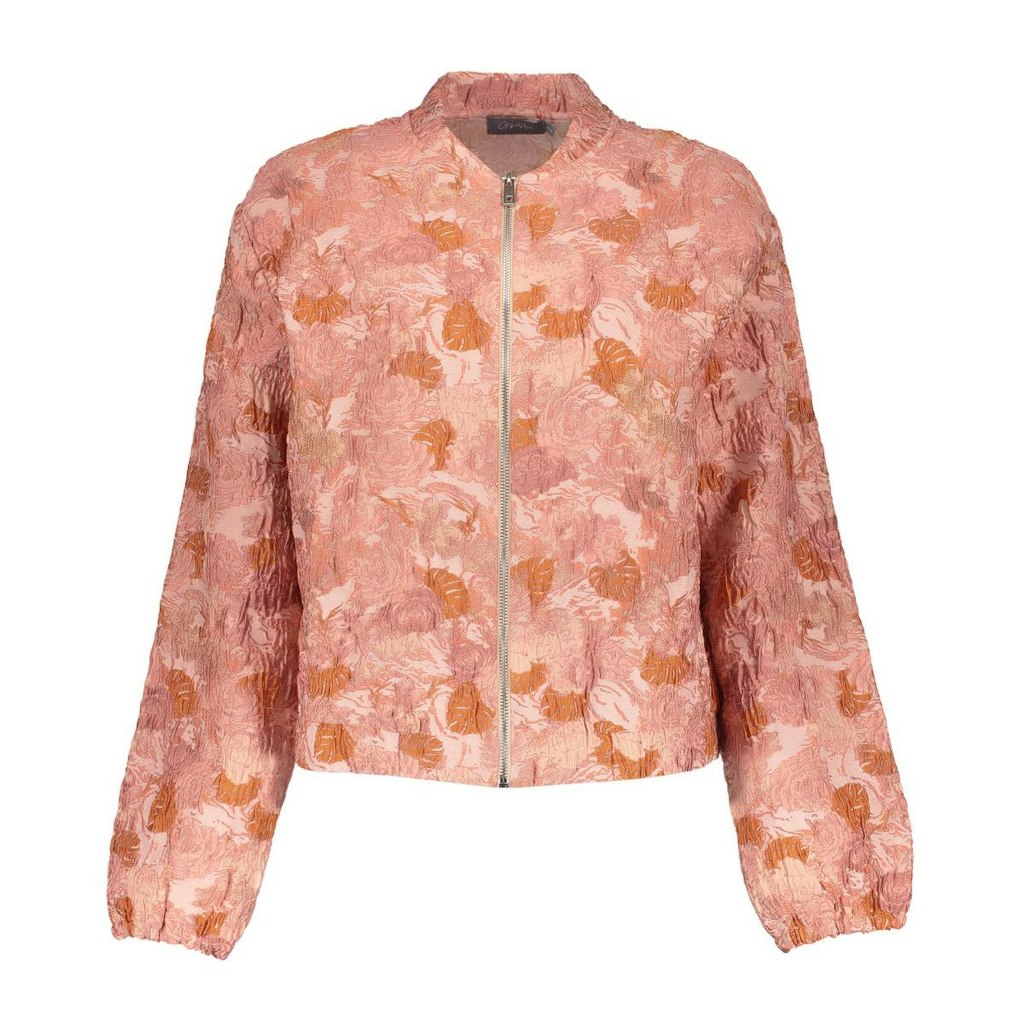 Bomberjacket van Geisha in een structuur dessin met een bloemen print, lange mouwen, opstaande kraag, ritssluiting en een elastische zoom. Materiaal: Polyester 98%| elastan 2%