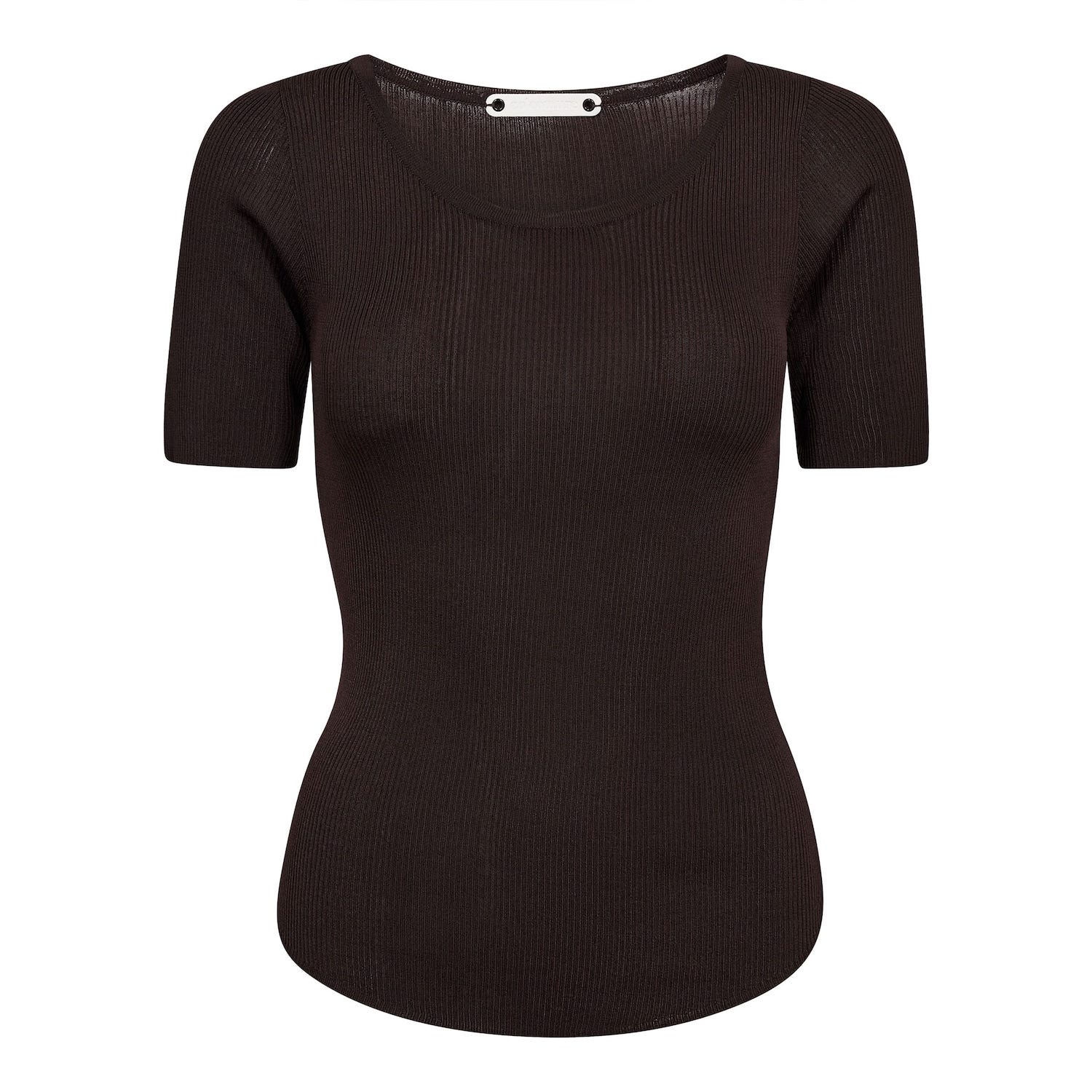 T-shirt van Co'Couture in een ribstructuur met korte mouwen en een ronde hals. Materiaal: Viscose 80%| polyamide 20%
