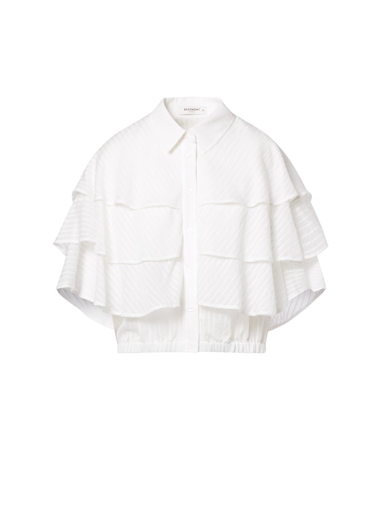 Blouse van Beaumont in een structuur dessin met meerlaagse driekwart capemouwen, kraag, knoopsluiting en een elastiscge zoom. Materiaal: Viscose 85%| polyamide 15%