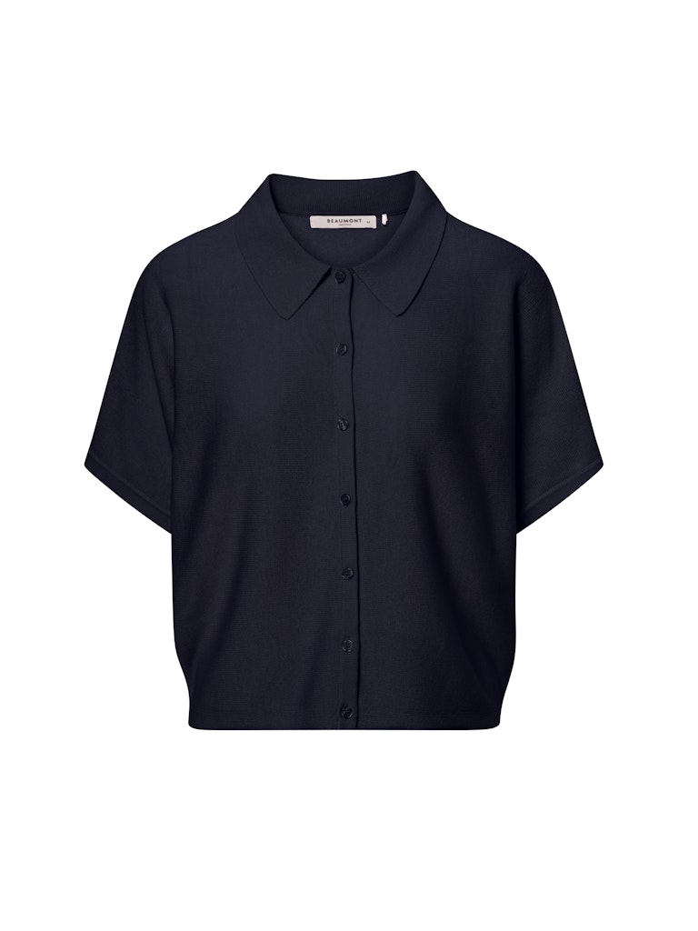 Fijn gebreid vest van Beaumont met korte aangeknipte mouwen, kraag en een knoopsluiting. Materiaal: Viscose 89%| polyamide 11%