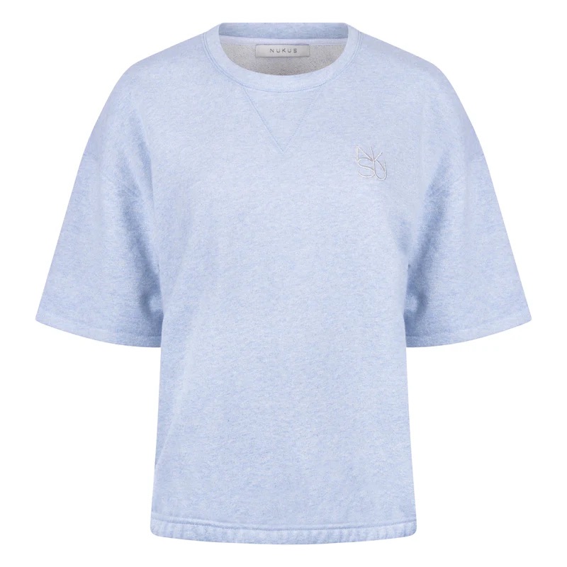 Pullover van Nukus met een subtiel glinstereffect, korte mouwen, ronde hals en geborduurd logo op de linkerborst.