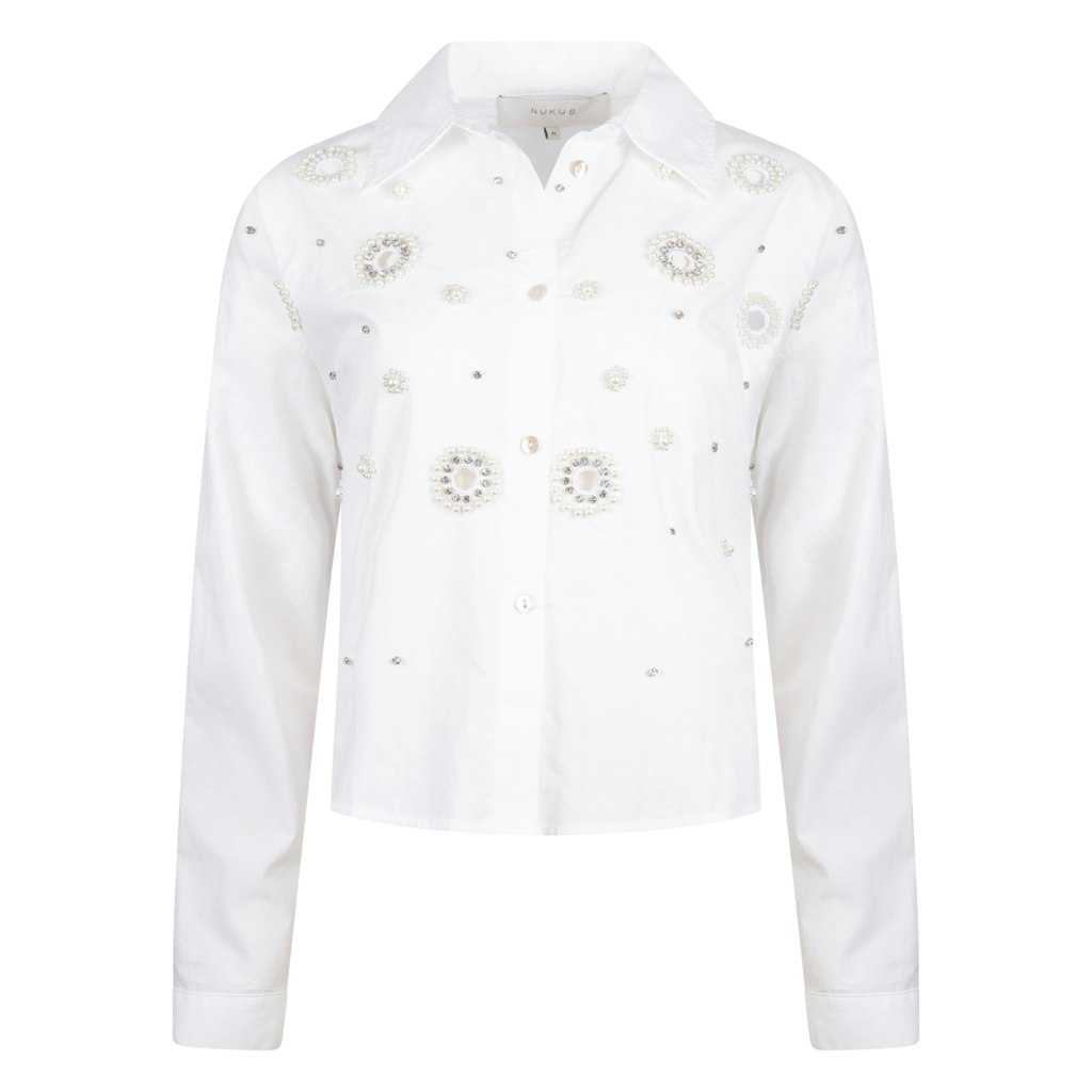 Blouse van Nukus met parel details, lange mouwen, klassieke kraag en knoopsluiting. Materiaal: Katoen 100%