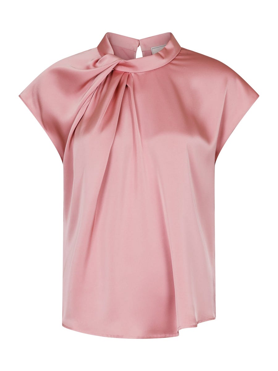 Blouse van Neo Noir in satijn look met kapmouwen, knoopdetail in de hals en een cut-out voorzien van knoopsluiting aan de achterzijde. Materiaal: Polyester 100%